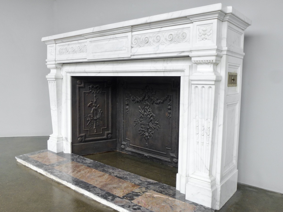 Sa dalle de sol d'origine au cadre en marbre Bois jourdan (Mayenne) à panneaux en marbre Sarrancolin (Haute-Pyrénées) la complète.