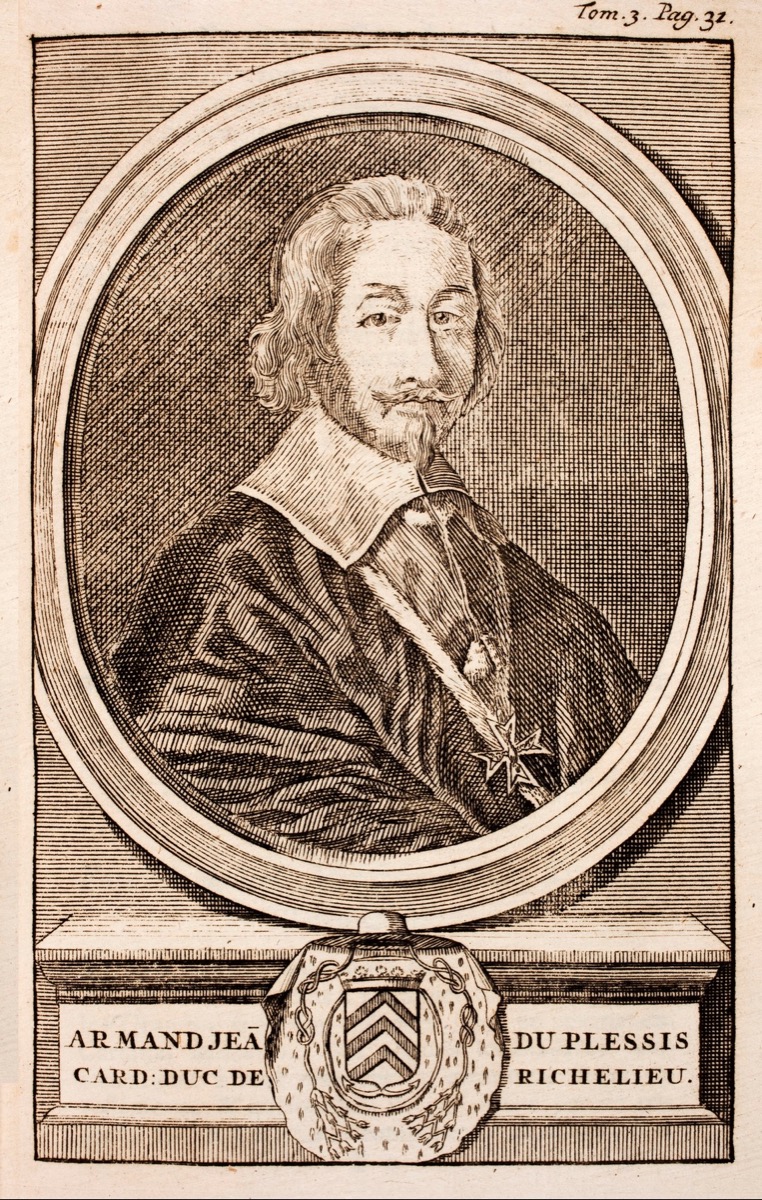 Fils de François du Plessis, sgr de Richelieu, ..., Conseiller du Roi en ses conseils d'état et privés, chevalier des Ordres en 1585 et de Suzanne de La Porte, dame de la Reine Louise de Lorraine en 1580.