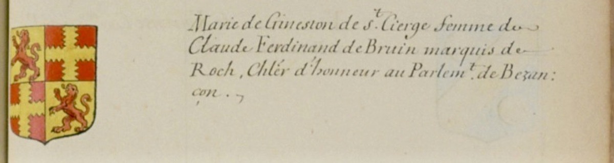 Mariée en 1681 à Claude-Ferdinand de Brun, 1649-1714, baron de Brun, marquis de la Roche au Comté de Bourgogne en 1694, chancelier d'honneur au parlement de Besançon.