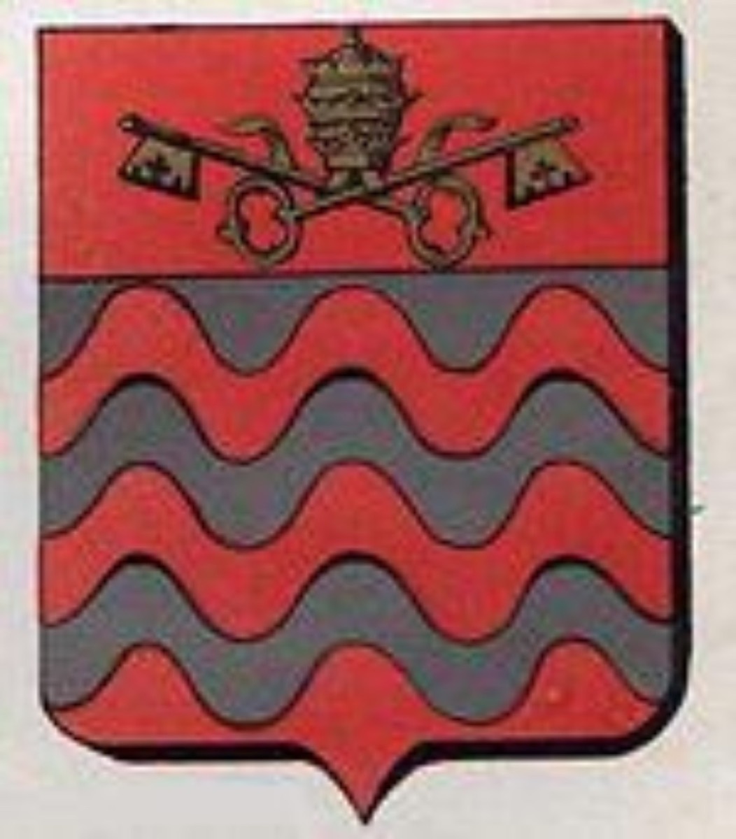 Blason : Fascé enté d'argent et de gueules de six pièces au chef de gueules chargé d'une ombrelle pontificale d'or.