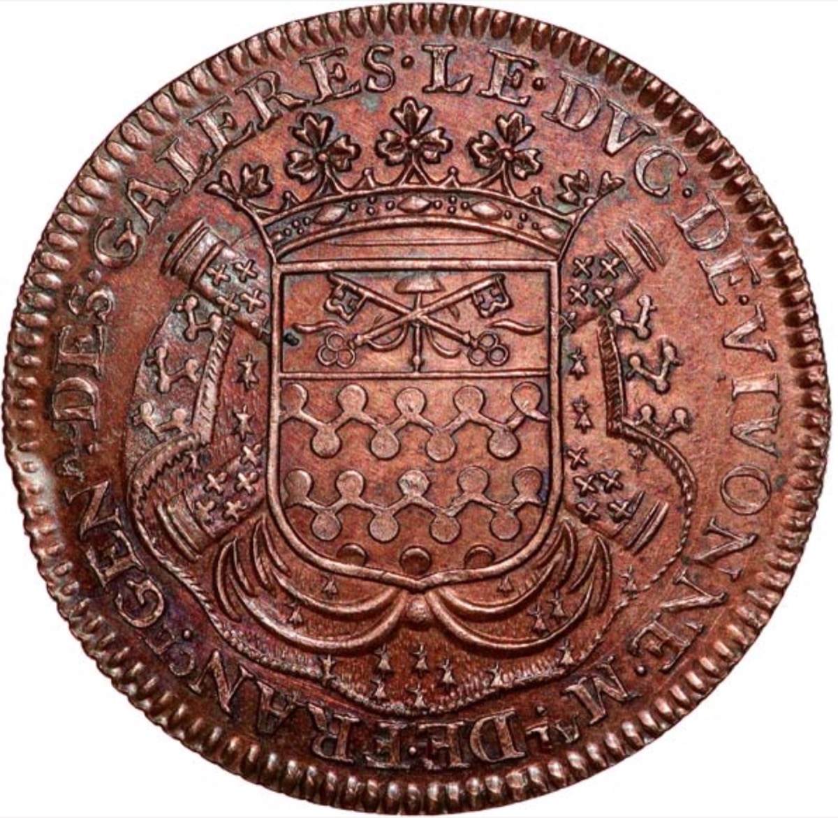 Notre dernière photo : Jeton de 1685, LE DVC DE VIVONNE MAL DE FRAN GENAL DES GALERES.