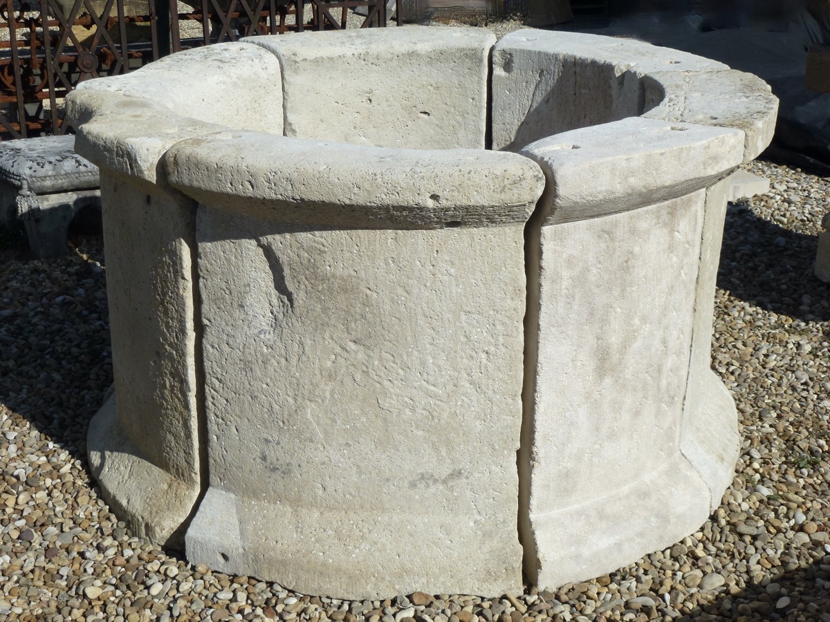 Important et rare puits taillé au XVIIème siècle, de belle patine, provenant du Lot et Garonne, en bon état après restaurations dans notre atelier. Sa margelle, d'une largeur moyenne de 24 cm, comme sa plinthe sont taillées à arêtes abattues, son diamètre intérieur est de 109 cm. Il est à noter quelques érosions, le temps a fait son œuvre.